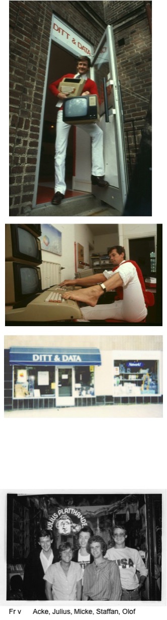 Vissa nätter blev jag kvar i affären tills det var dags att öppna på morgonen. Det stod snart klart att jag måste ha en egen dator. Jag gick ner till Nisse och Eva på Karlberg & Karlberg på Arkivgatan i Lund och handlade för hela förmögenheten inklusive arvet från min morfar.