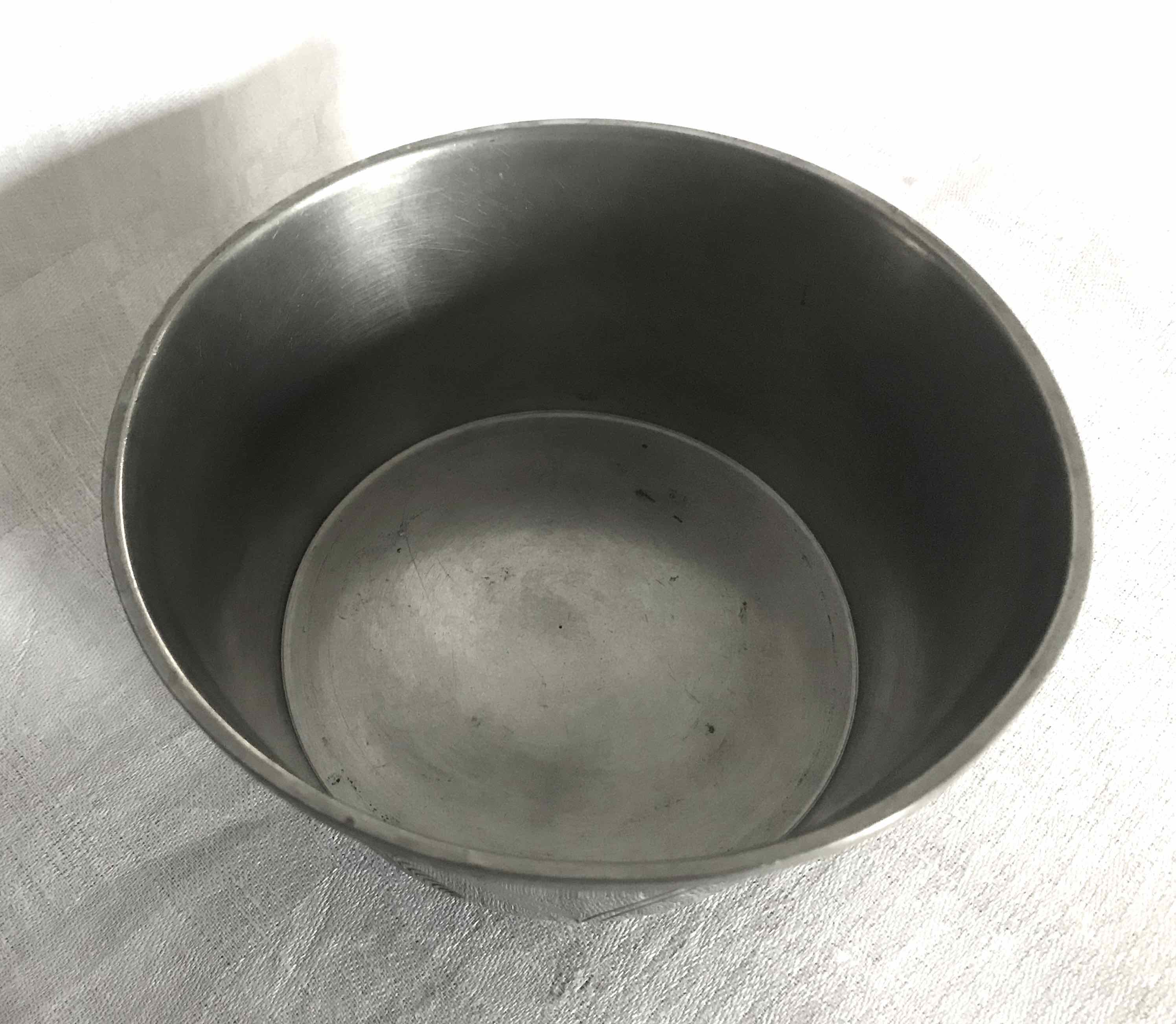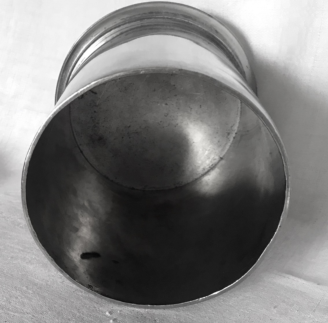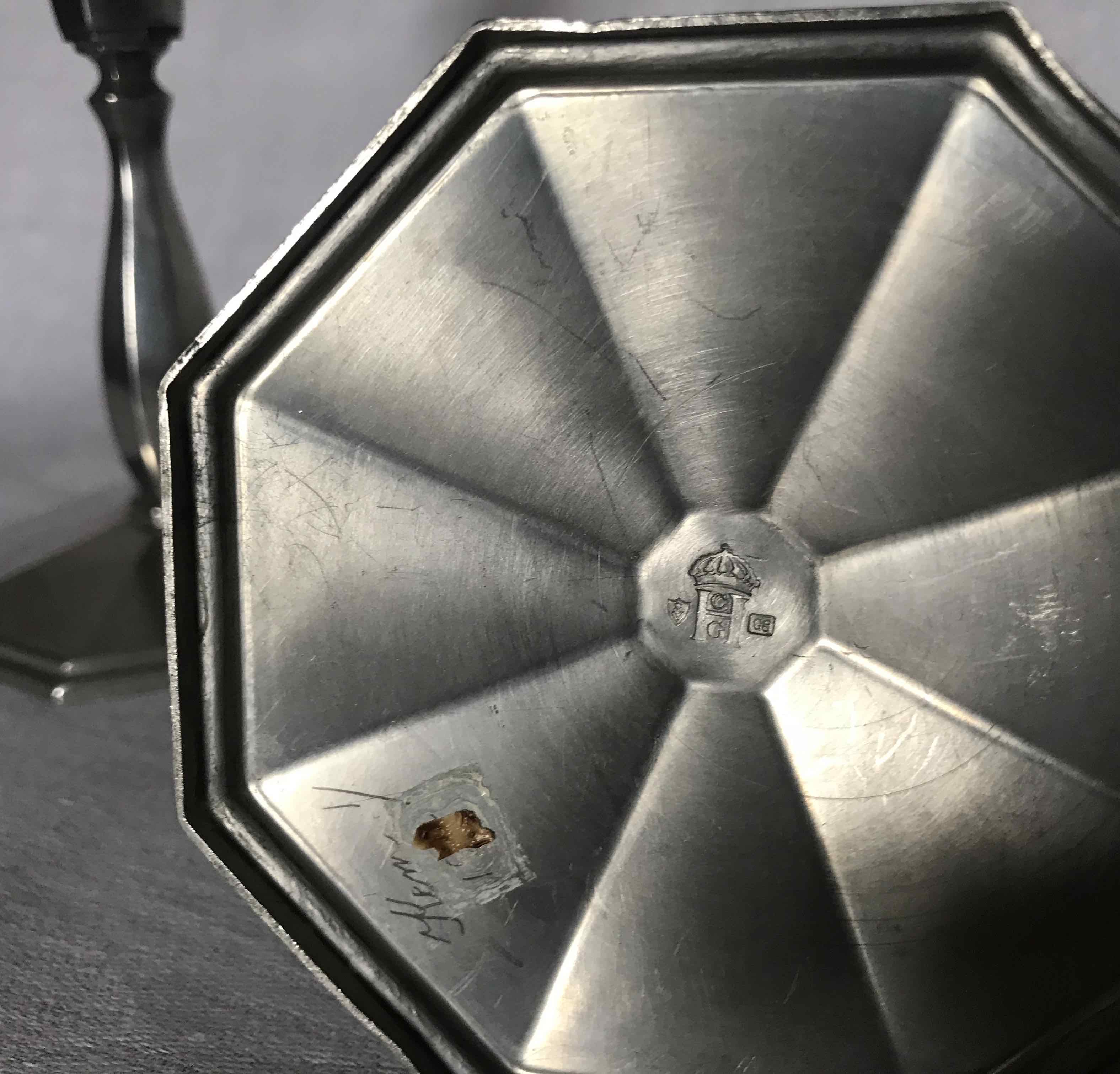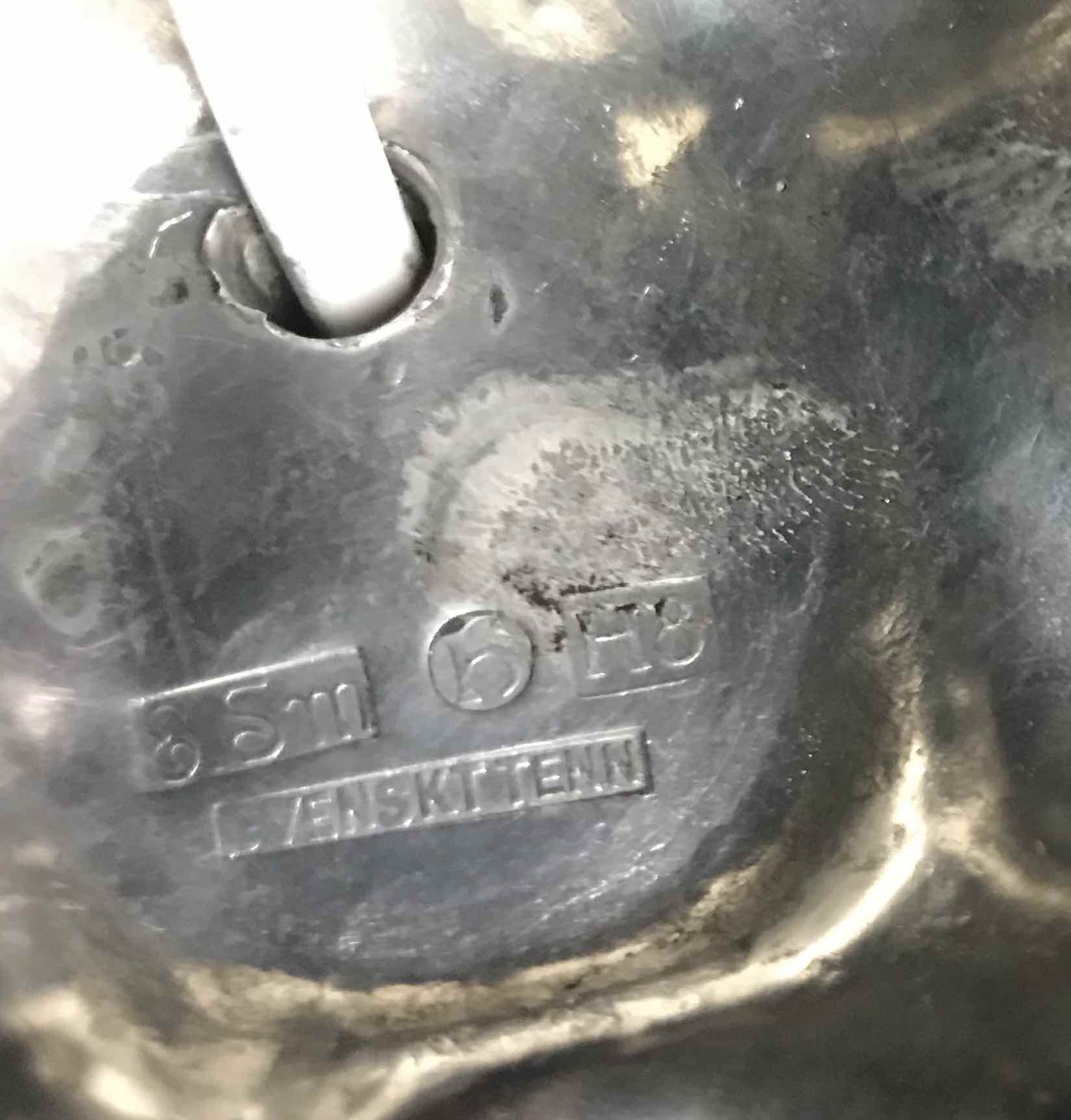 Skick: OK, Gjutet tenn. Kraftfull. Spår av polering samt några mindre nagg - se bilder.