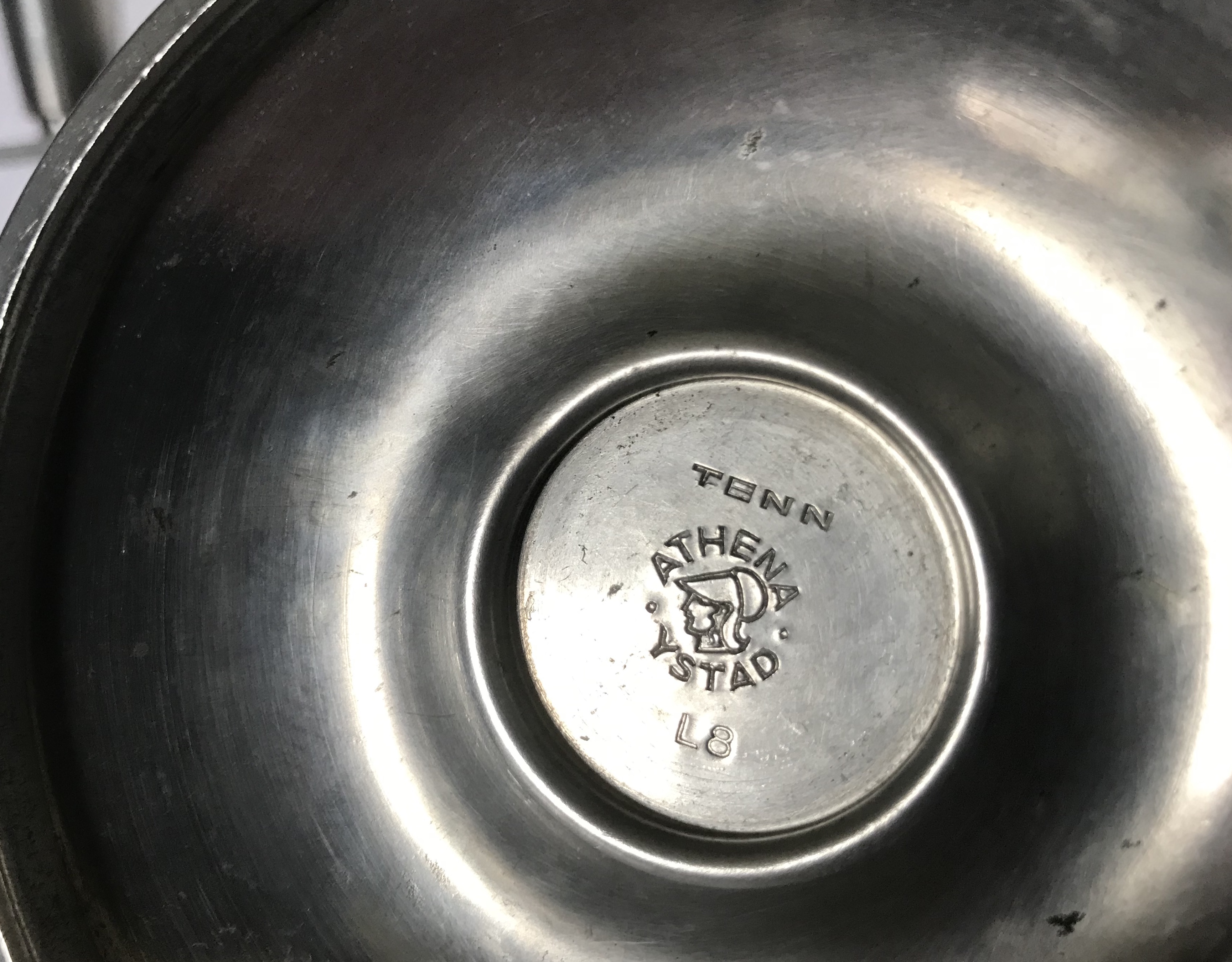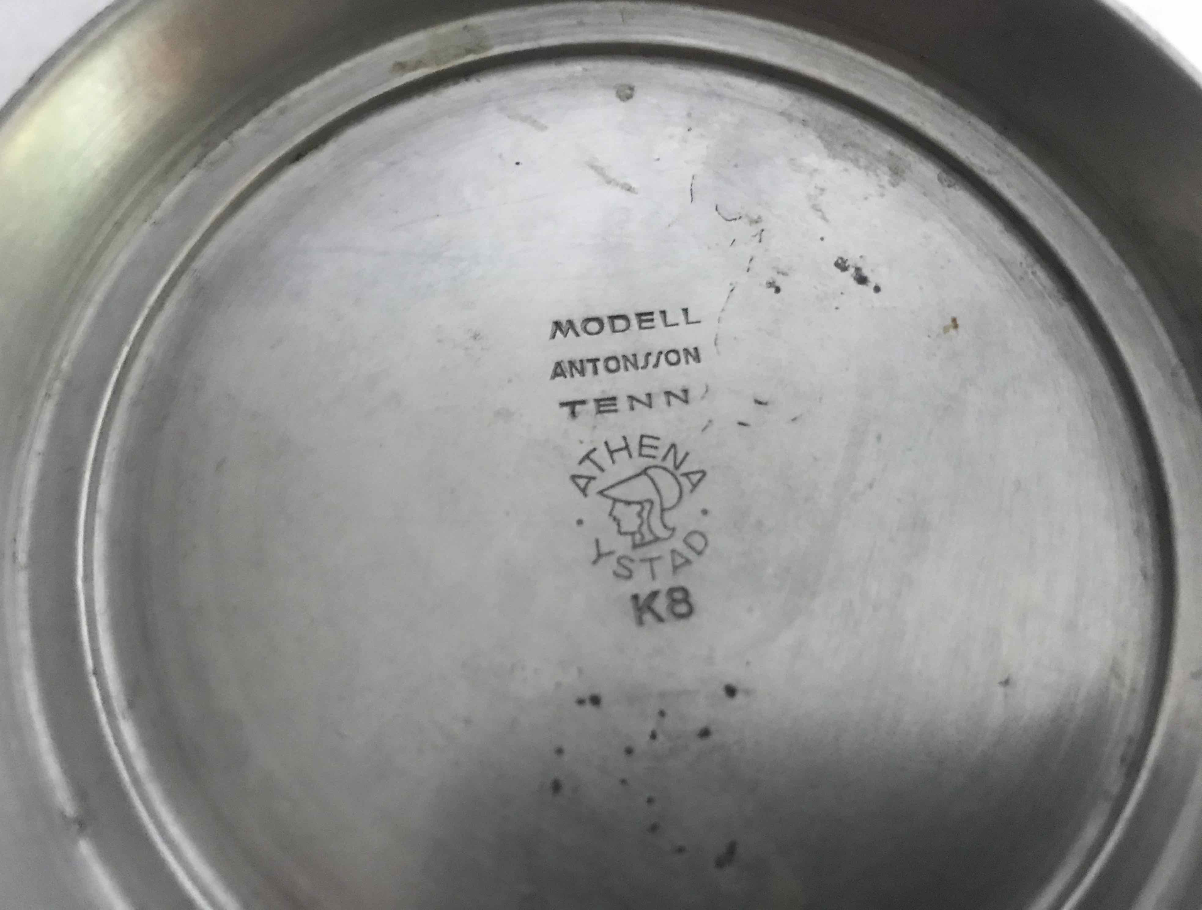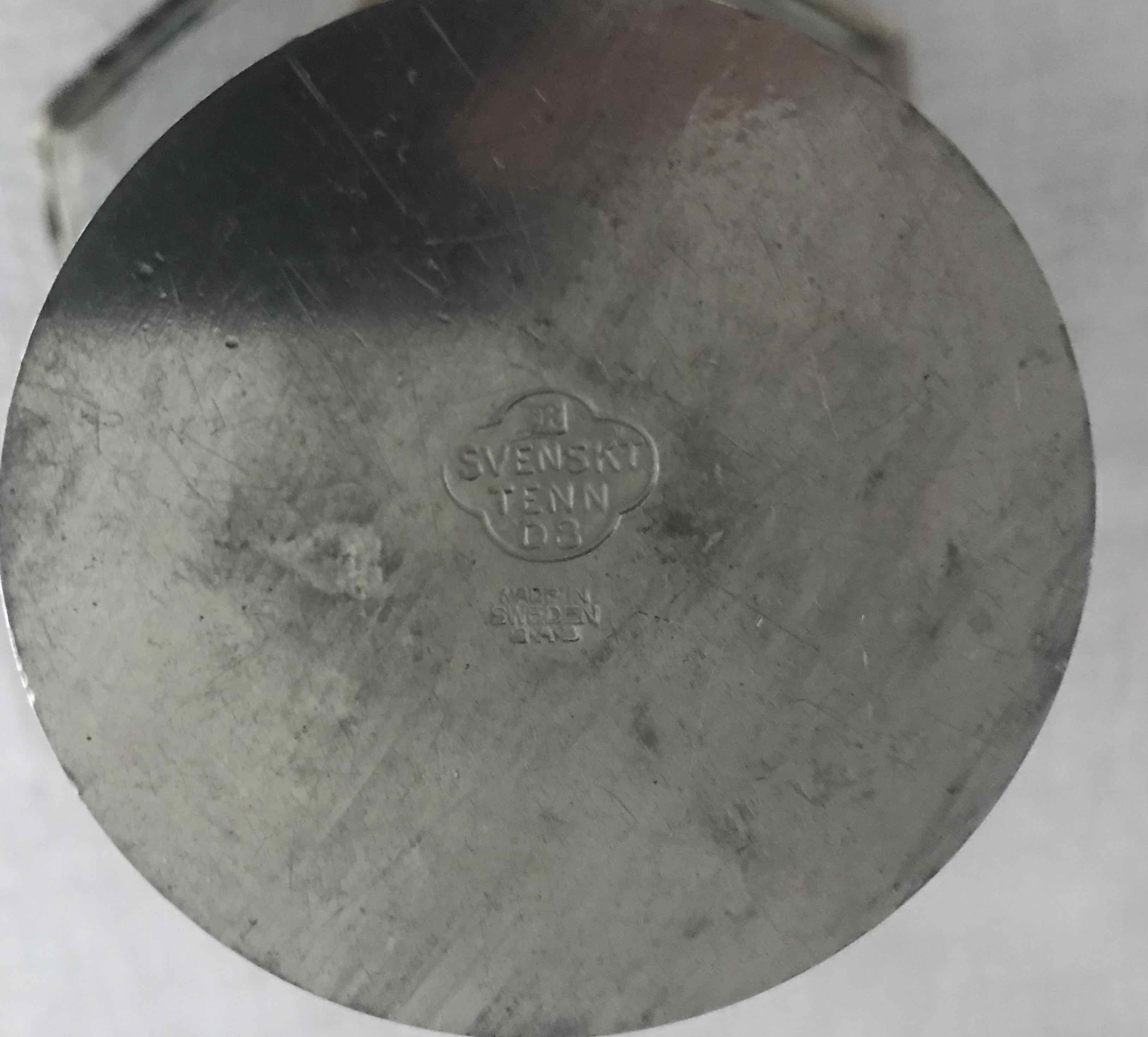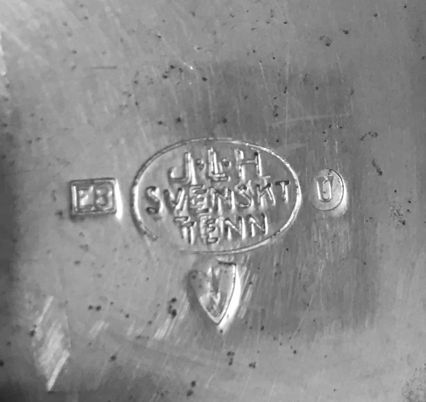 Skick: Mkt fina. Stämplat tenn i en vapenskjöld, även stämplade 39/18.