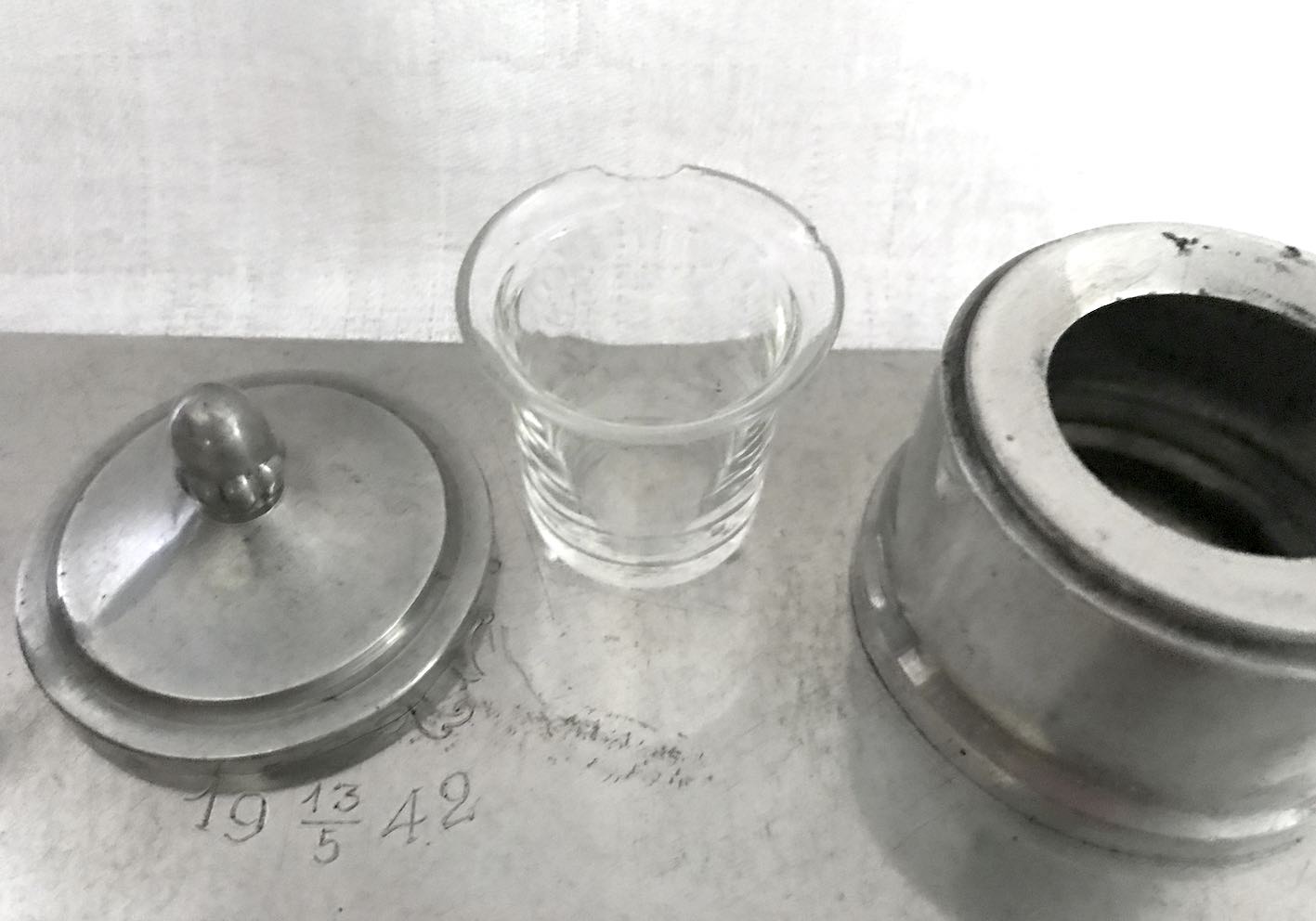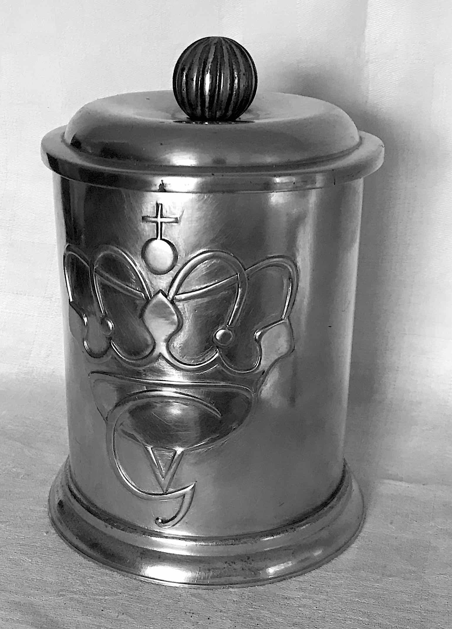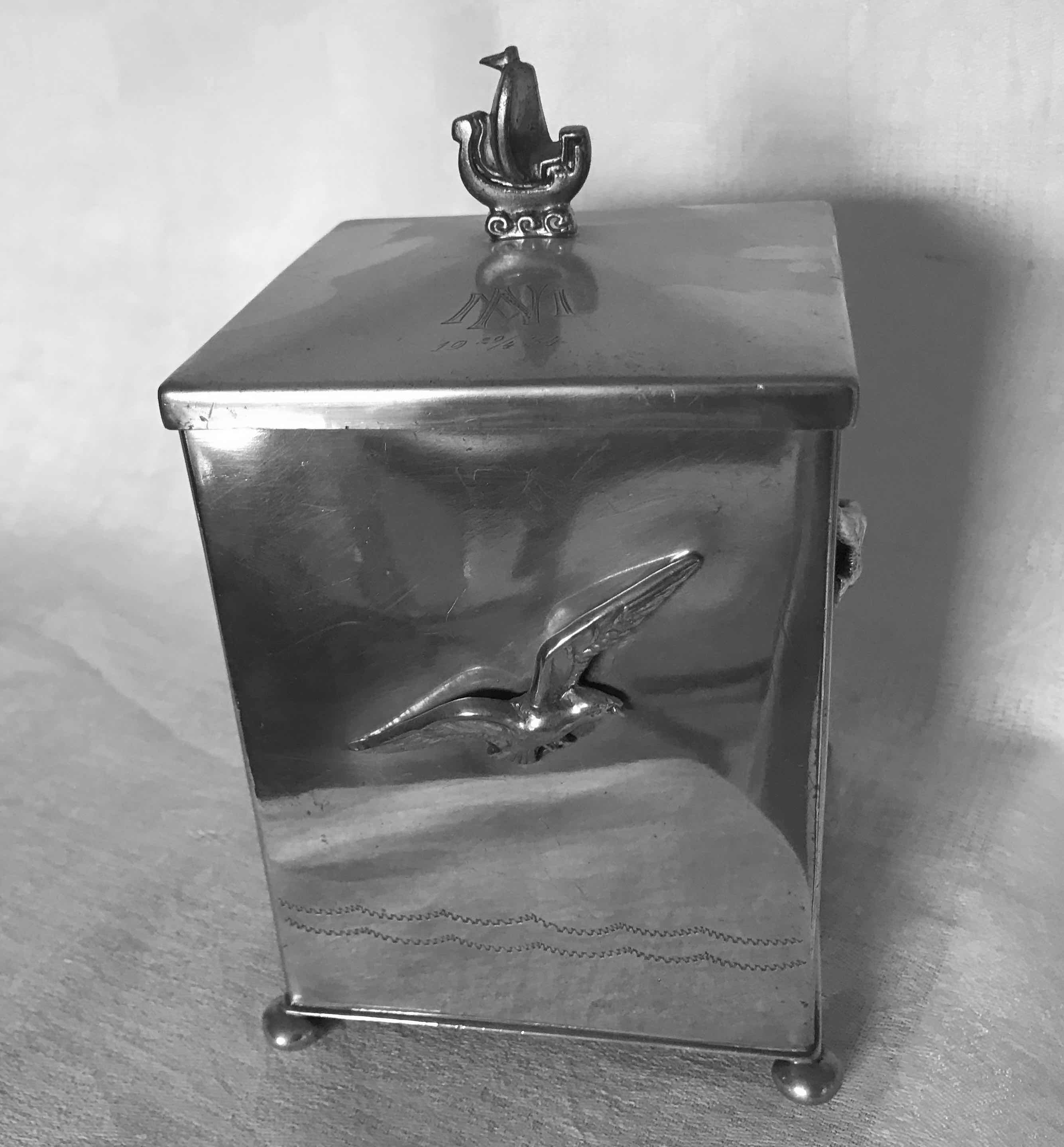 Skick: Mycket gott. Liten gravyr på locket. Även stämplad U. Burken är tillverkad av Harald Linder i Uddevalla men försåld av JL Hultman.