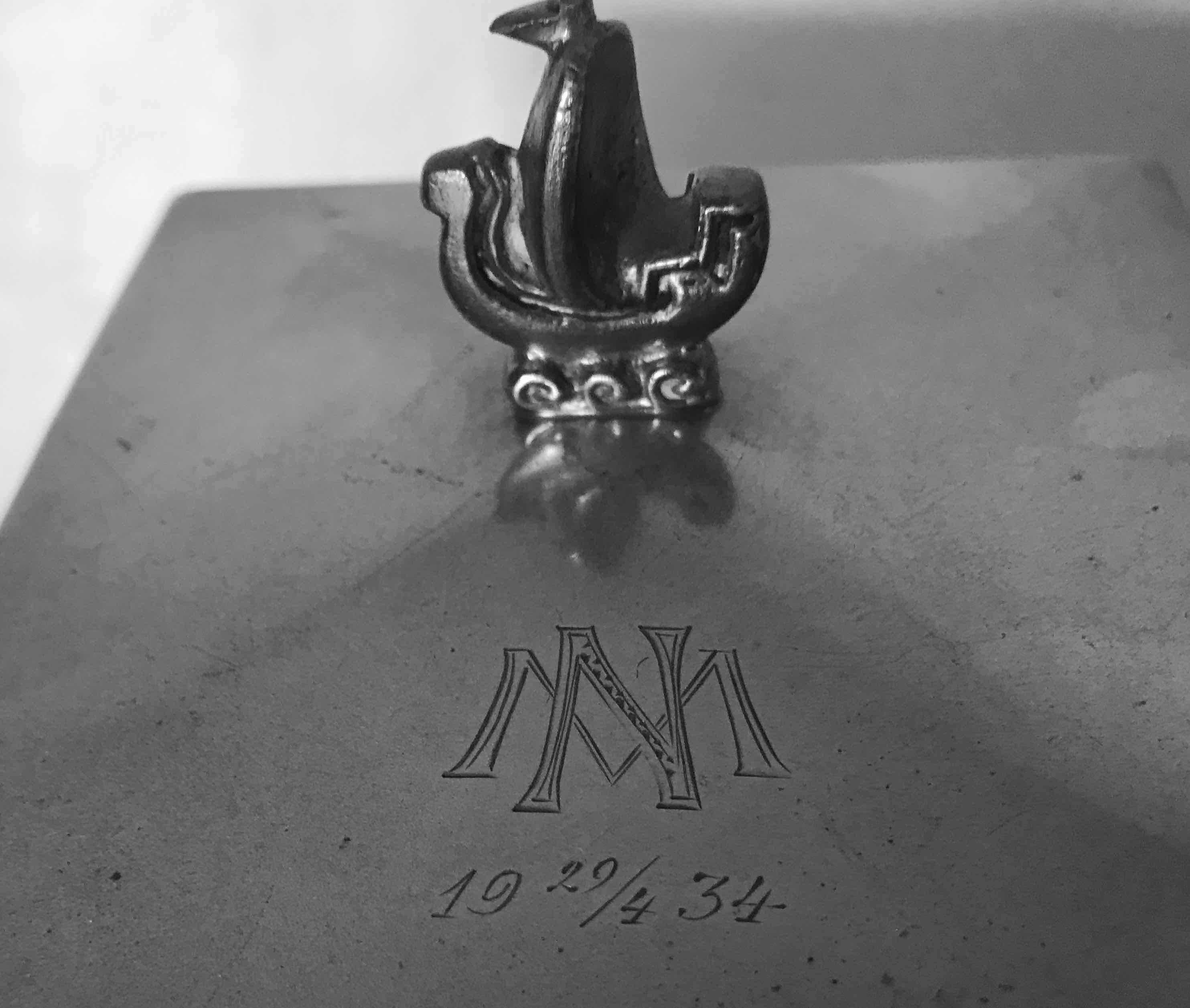 Skick: Fint skick. Se Bild. Gravyr på ena sidan. Art Deco.