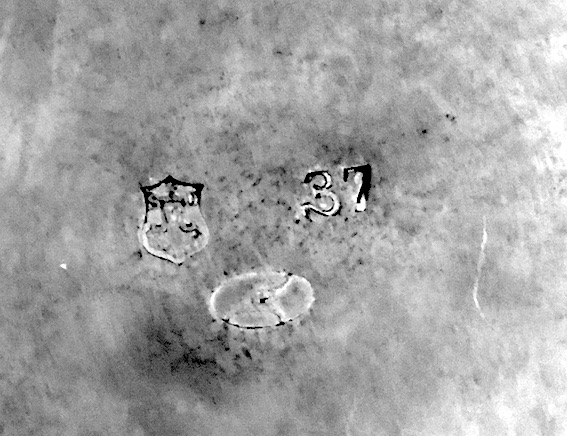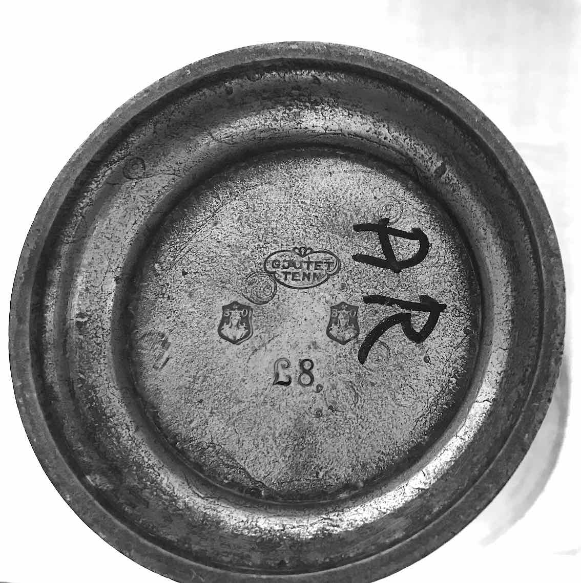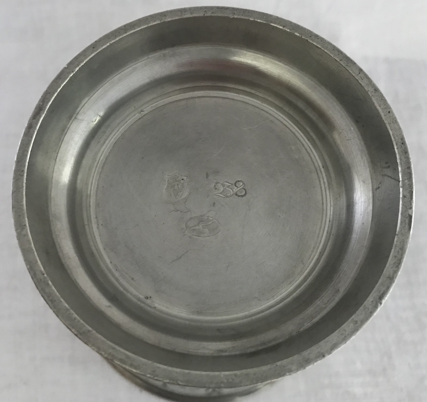 Skick: Gott. Stämplat tenn i en vapenskjöld, även stämplad 1129.