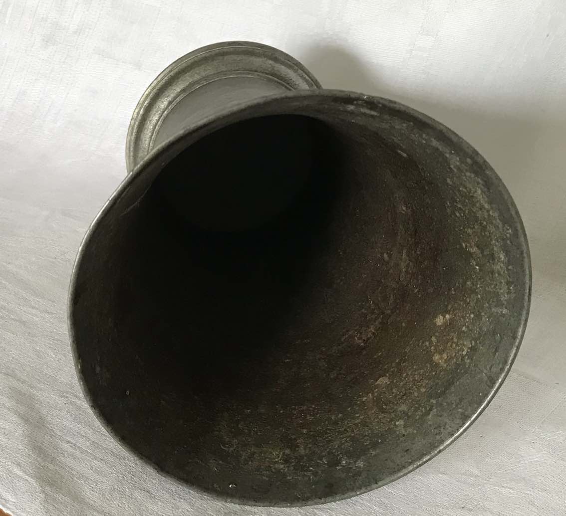 Skick: Mkt gott. Gjutet tenn. Oerhört gediget och vackert objekt.