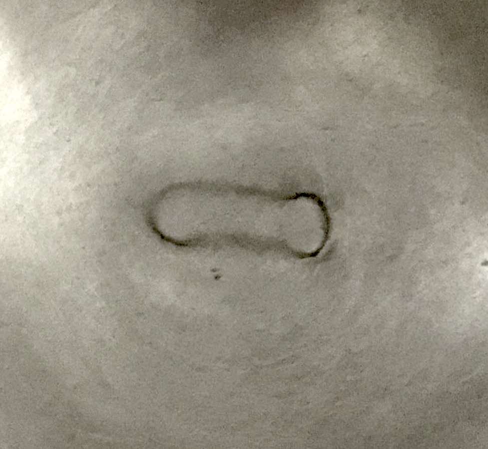 Skick: OK. Lagning av infästning av fot i fat. Se bild.